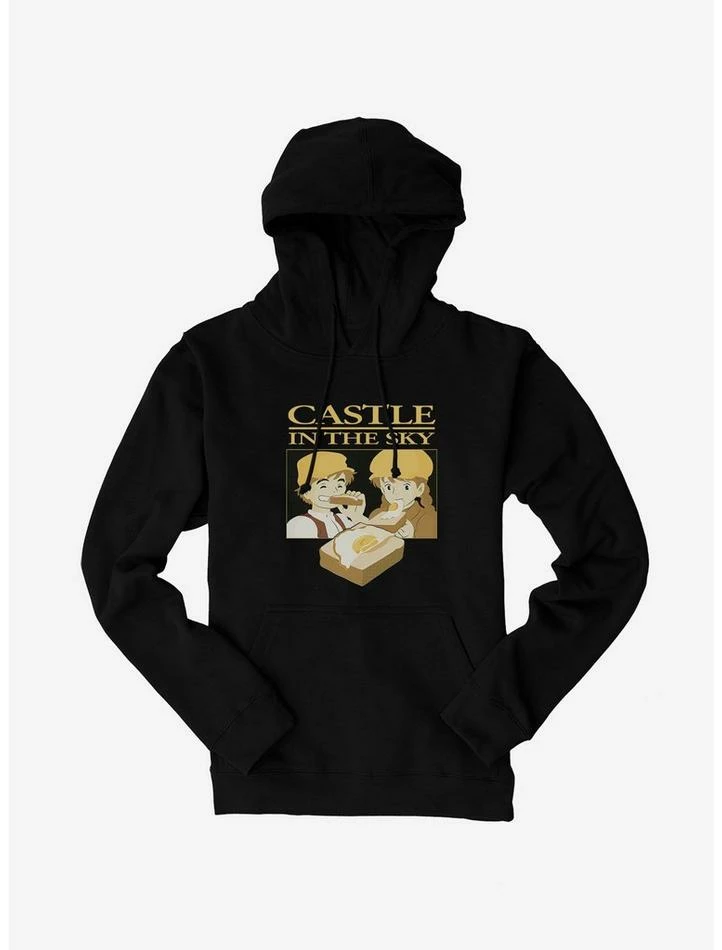One slice of Laputa Bread, coming right up! This pullover Studio Ghibli hoodie celebrates the iconic moment from Castle in the Sky when Pazu shares his egg on toast with Sheeta. Mmm, egg-cellent!