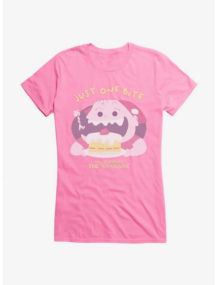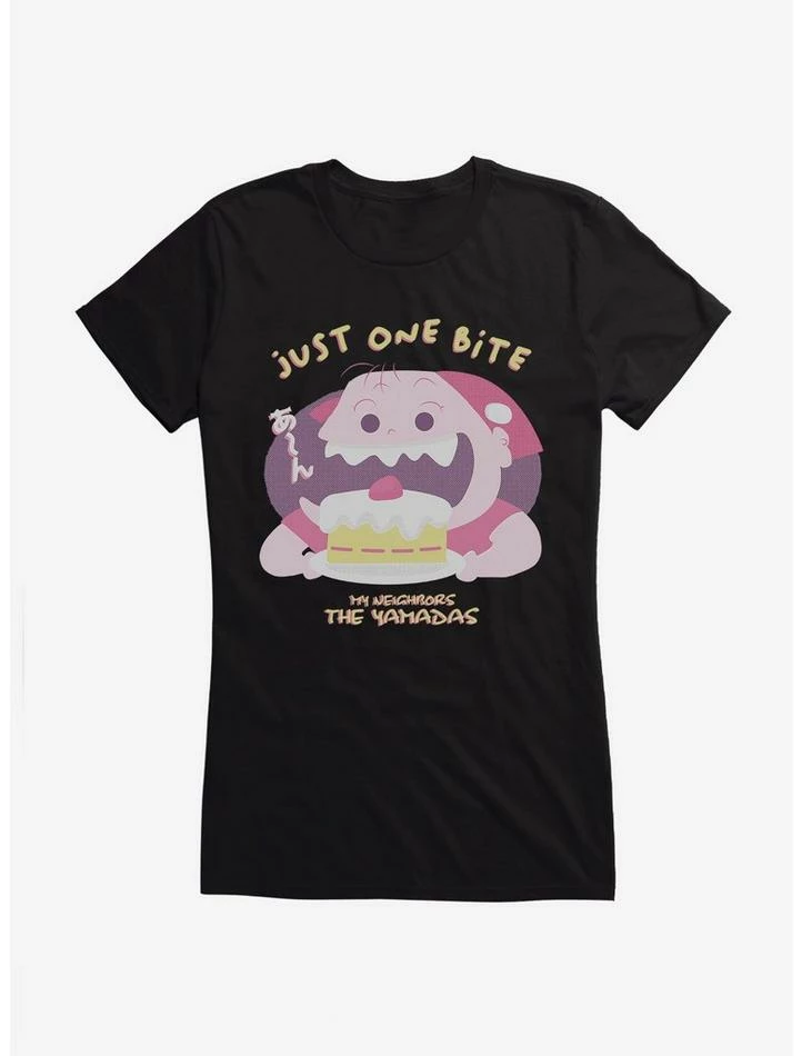 “Just one bite.” This fitted tee — inspired by the Studio Ghibli film My Neighbors The Yamadas — features the character of Nonoko about to literally take the cake. *Chomp!*
