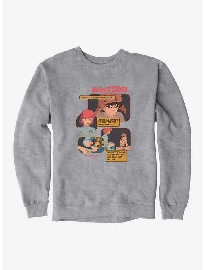 “These nuts taste awful — what are they?” This sweatshirt from the Studio Ghibli film Nausicaa of the Valley of the Wind captures the moment Asbel eats his first Chiko Nut. They may taste awful, but according to Nausicaa they’re supposed to be “very nutritious.” *Shrugs*.