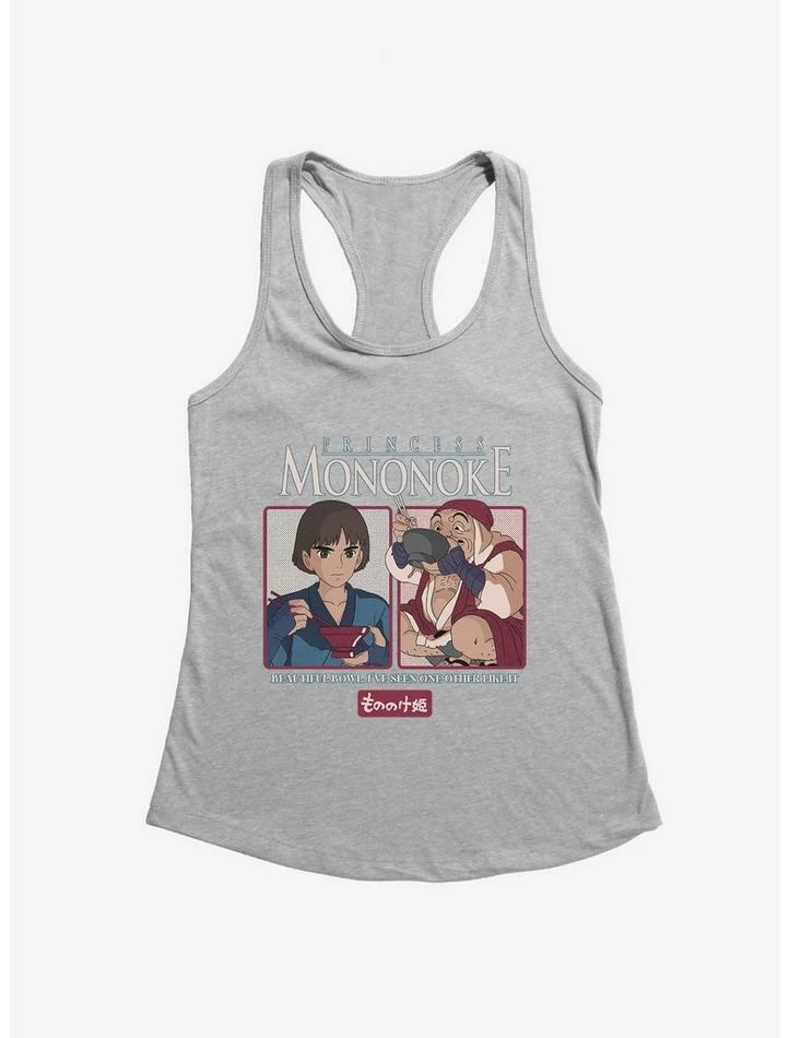 “Beautiful bowl, I’ve seen one other like it.” This racerback Studio Ghibli tank takes inspiration from the scene in Princess Mononoke where Ashitaka and Jigo share a meal.